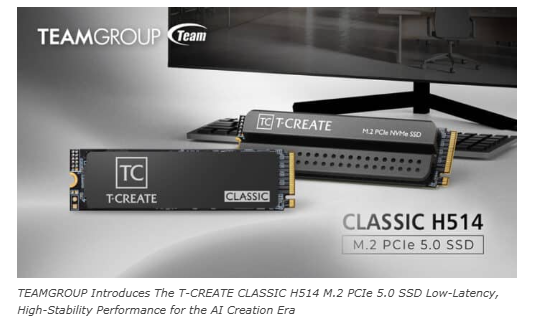 Team Group Inc. представи T-CREATE CLASSIC H514 M.2 PCIe 5.0 SSD, за да отговори на търсенето за съхранение на данни в ерата на генеративния AI.Изграден върху интерфейса PCIe Gen5 x4, SSD осигурява до 14 200 MB/s скорост на четене и 13 300 MB/s скорост на запис.Трансферът на данни поддържа достъп до големи творчески активи и работни натоварвания като редактиране на видео, обработка на изображения, визуални ефекти и 3D моделиране.Той също така поддържа работни потоци за извеждане и обучение на локален AI модел.